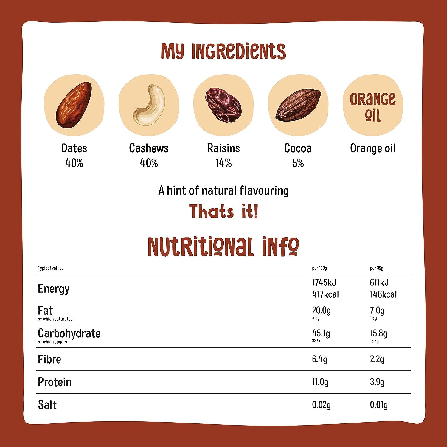- GLUTEN FREE – Nakd Cocoa Orange is a delicious wheat free and gluten free fruit and nut bar.